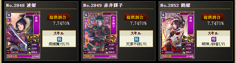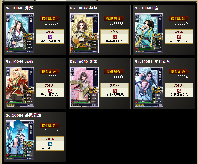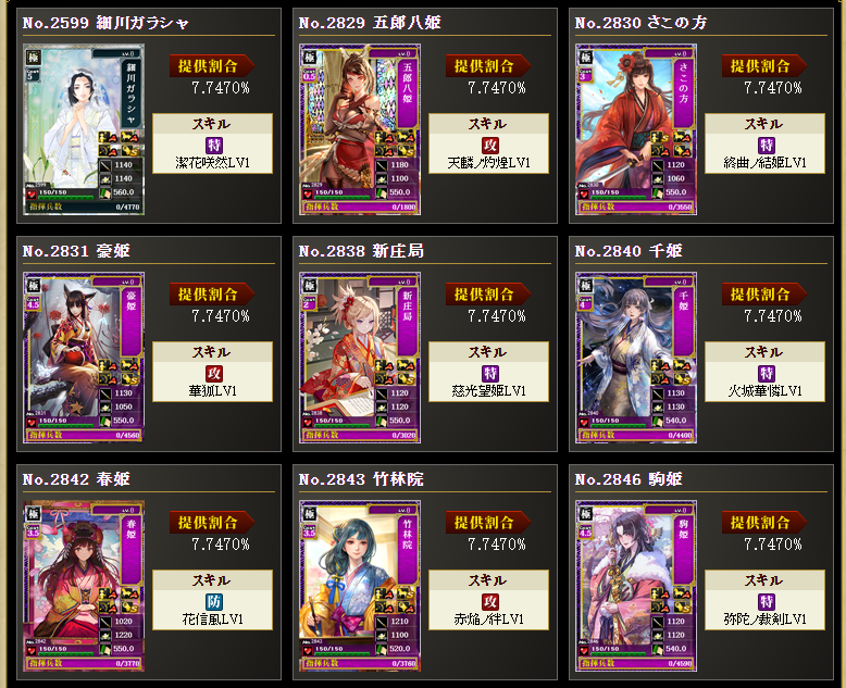 めぼしいのは帰蝶、長尾ちゃん、千姫、春姫、竹林院、駒姫、波姫、赤井ちゃん、鶴姫あたりでしょうか。