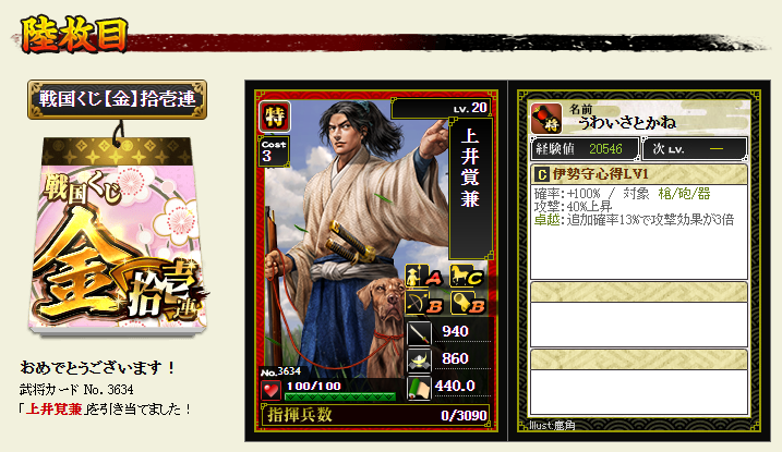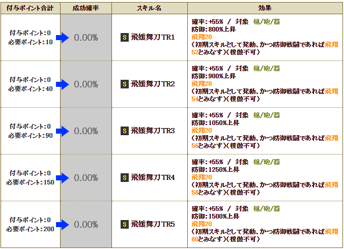 鍛錬するとTR2まで見て飛翔が4up。上杉謙信と合わせて8up