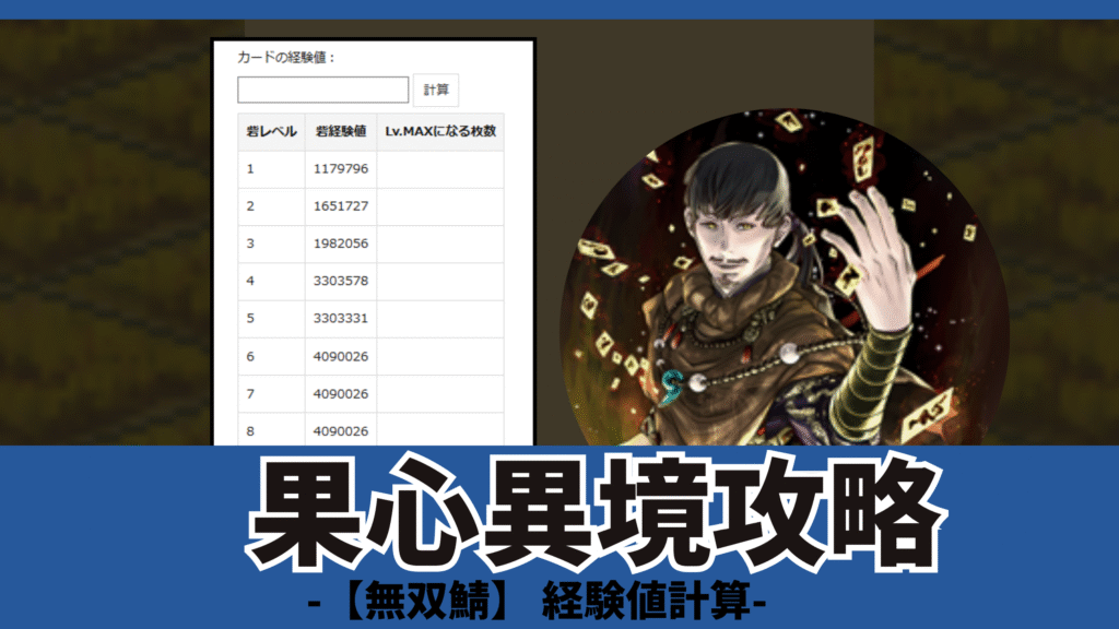 ①カード経験値に、異境で凸りたい武将の経験値を入力してください。
