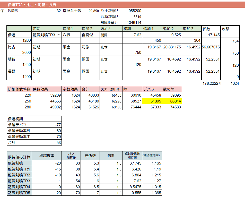 雰囲気で合成をしていますが、彼を入れた伊達部隊の火力はこんな感じになるイメージをしています。