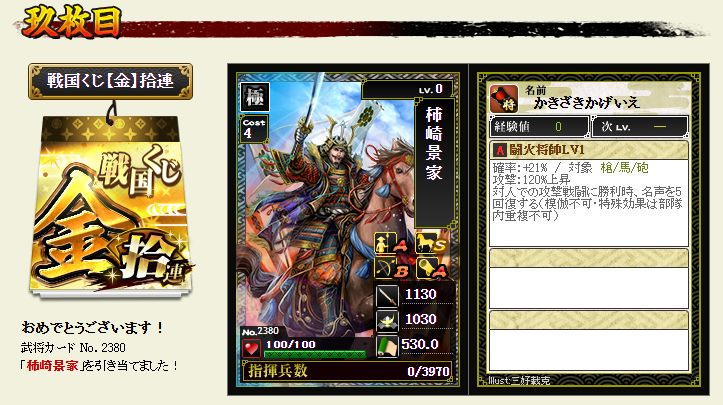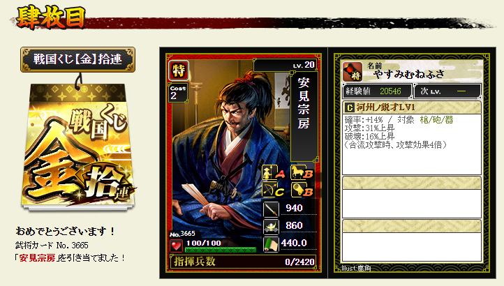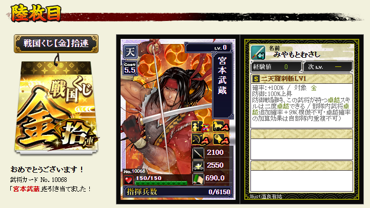 あと、武蔵を引くことができましたが使い道は悩みます。
