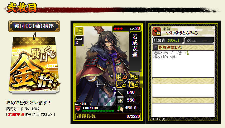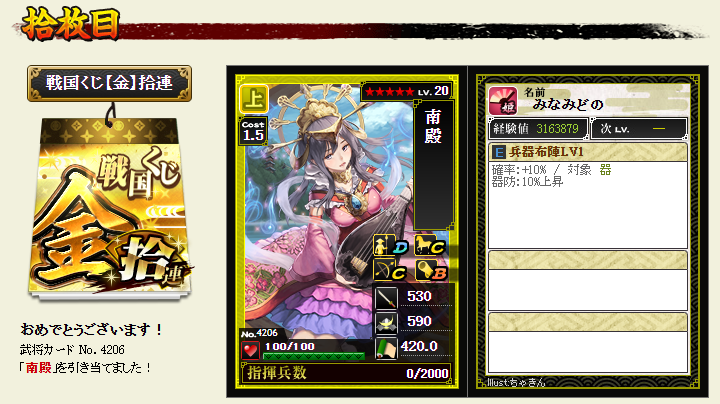 あと1回金くじを引いて、、、極1枚だったとしても、合成なりなんなりしていたら200まで届きそうです。