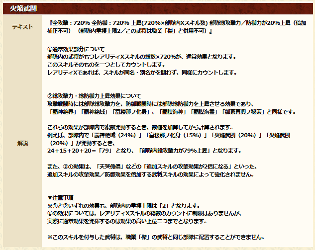全攻撃:〇% 全防御:〇% (720%×部隊内Xスキル数)