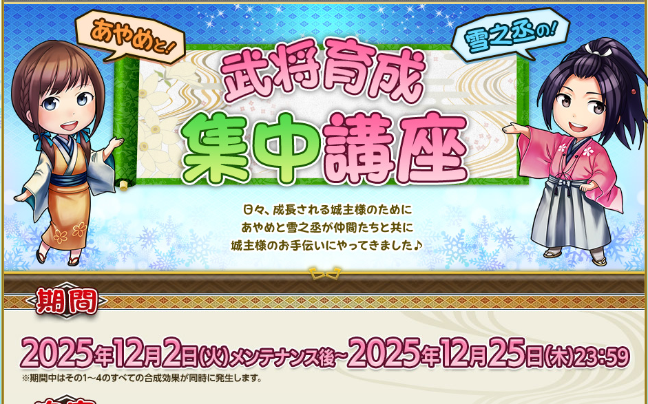 クリスマスが終わるとともに、育成講座も終わってしまうので早めにできる合成は終わらせておきましょう。