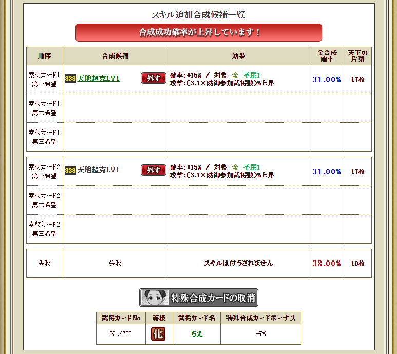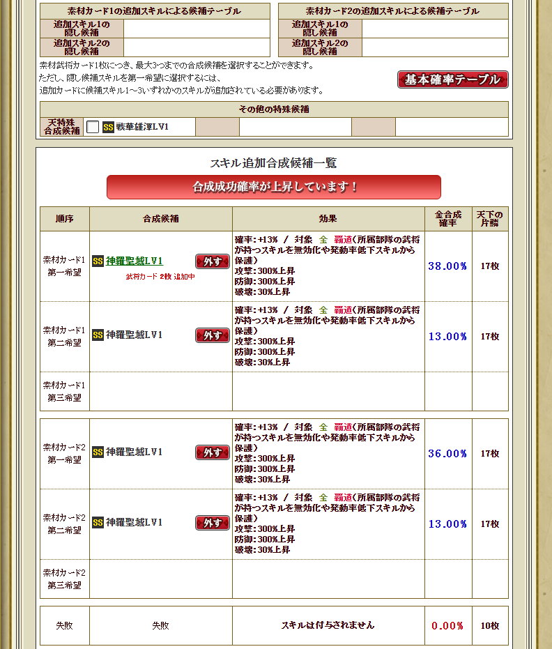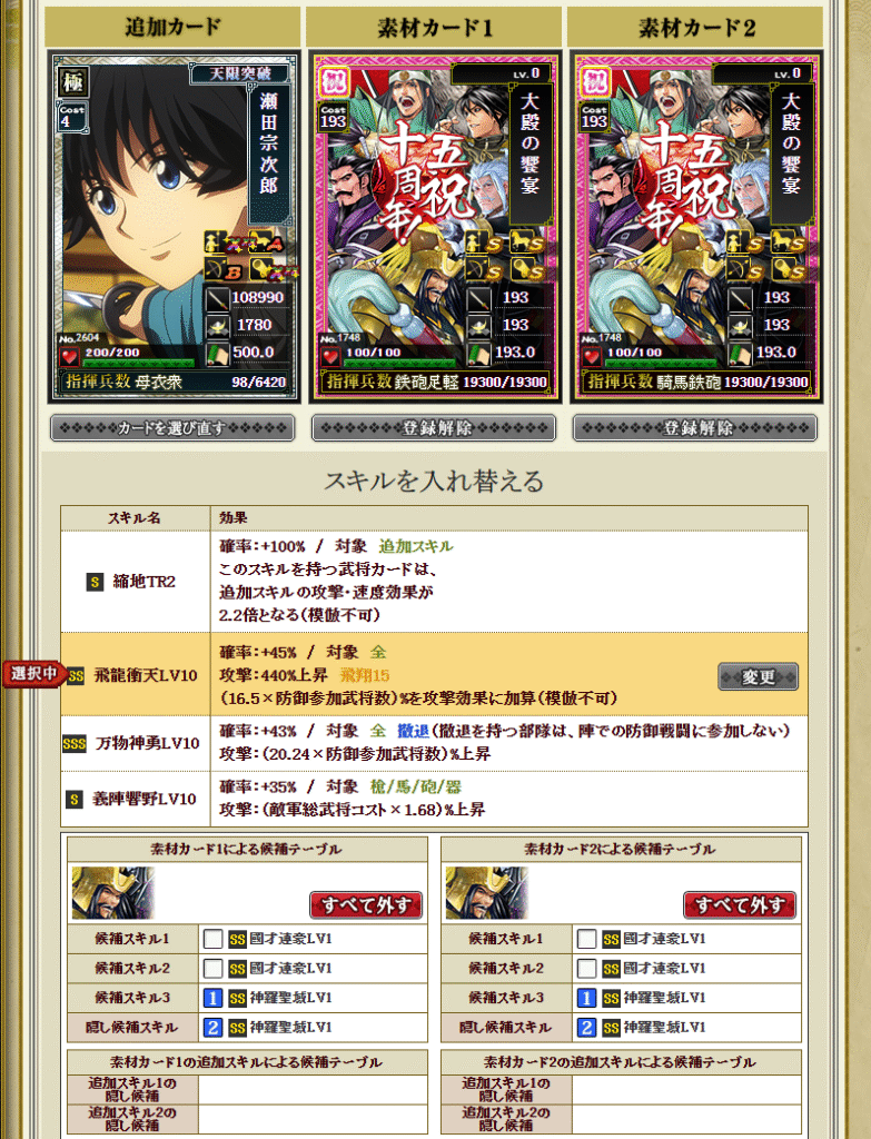 | 候補スキル3 | 千里必勝ノ神算 |