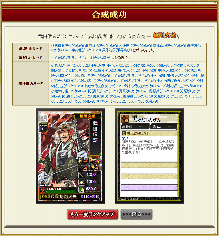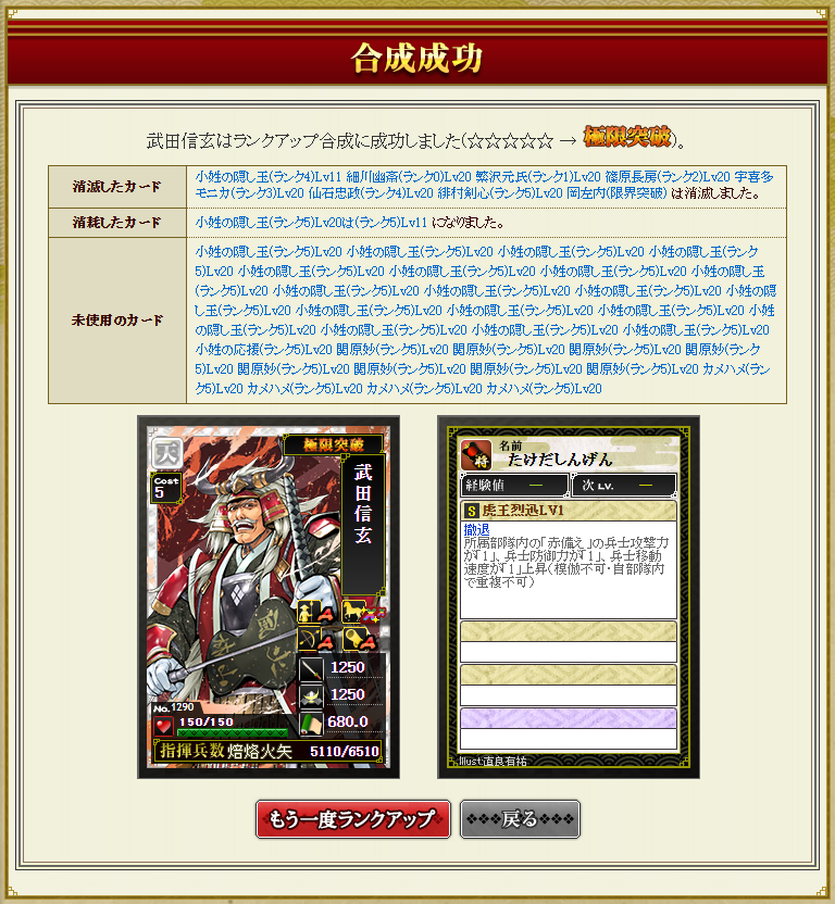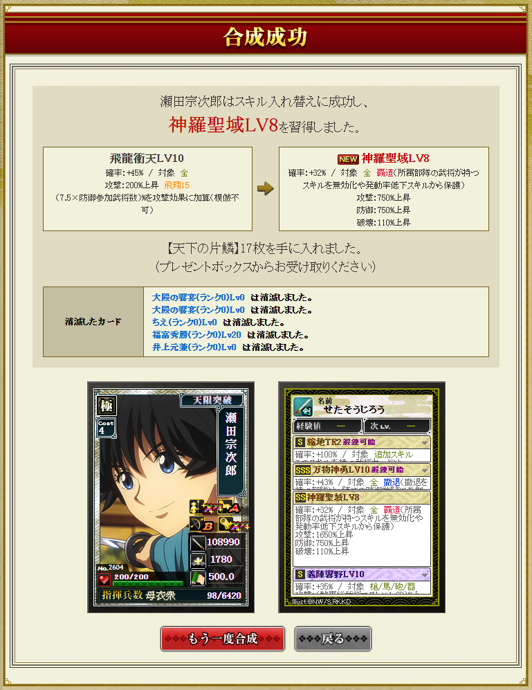 豊臣部隊が組めるようになり、馬鹿らしくなって素材になってしまったという経緯がありますw