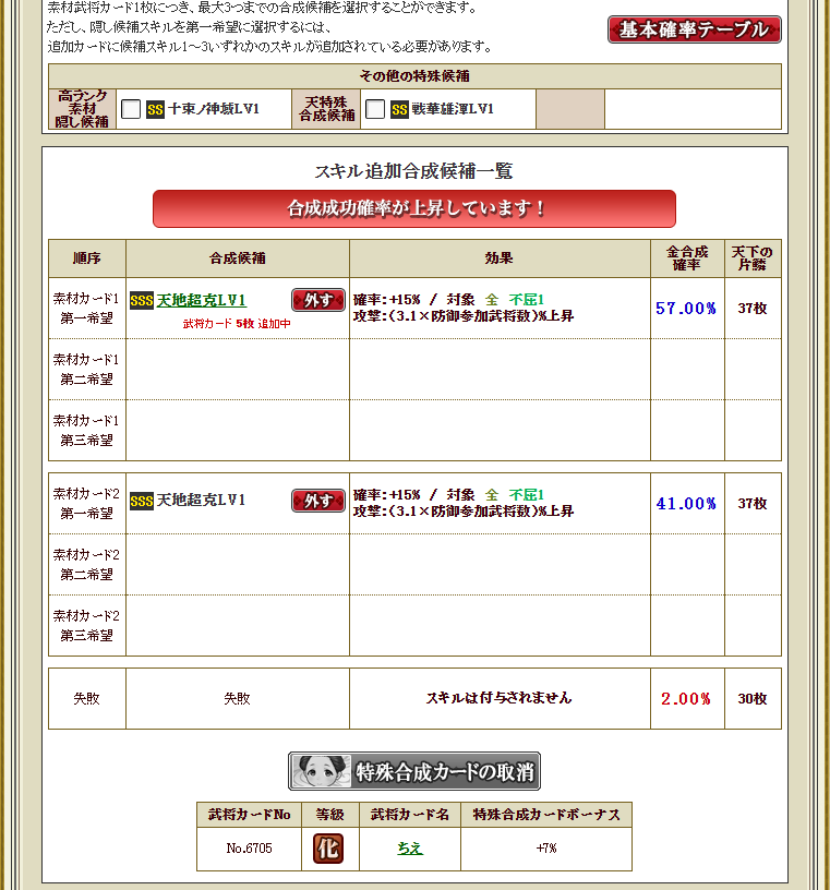 饗宴2枚+(見切れていますが)★0ちえ1枚+特2枚で100%になりました。